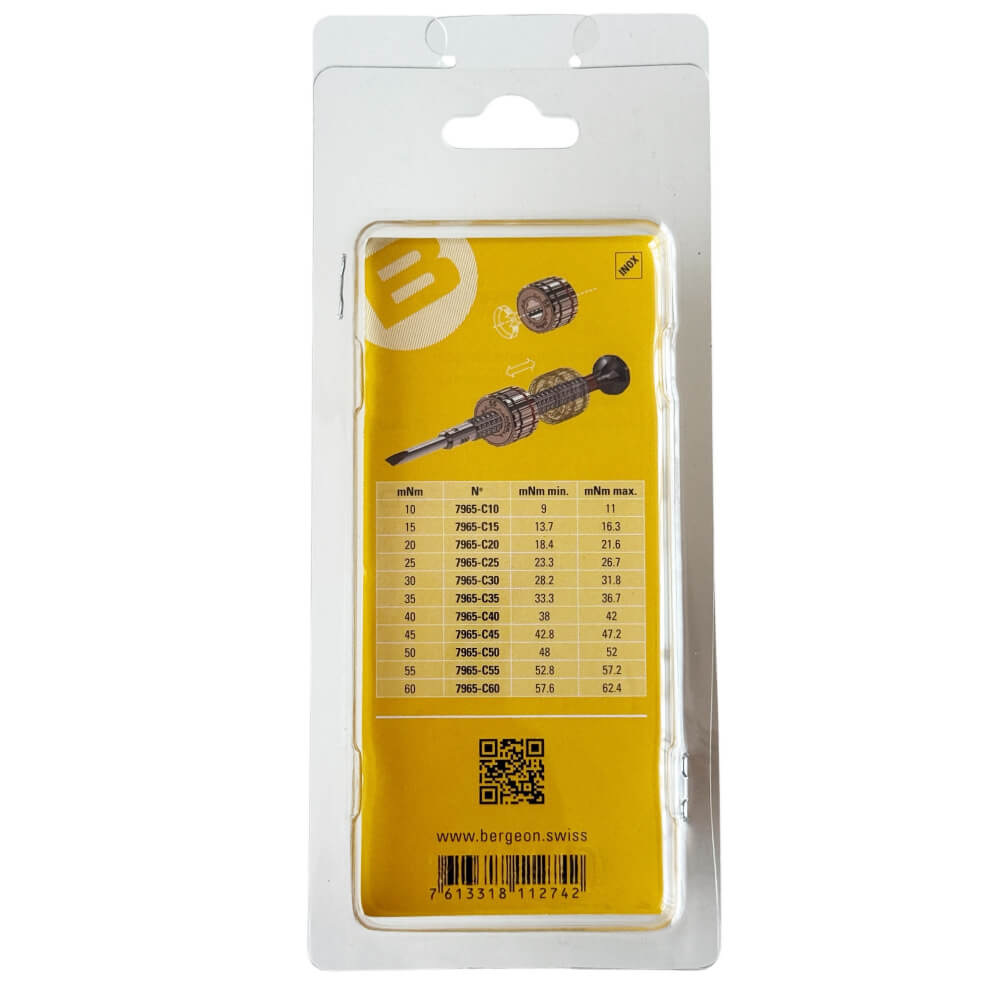 The Bergeon 7965-C35 Dynamometric Cylinder is a meticulously engineered component designed for unparalleled torque control in watchmaking and precision assembly. Specifically crafted for use with the Bergeon 7965 series screwdrivers and specialized profile tools, this cylinder guarantees consistent and accurate torque application, safeguarding delicate screws from damage and ensuring optimal performance.