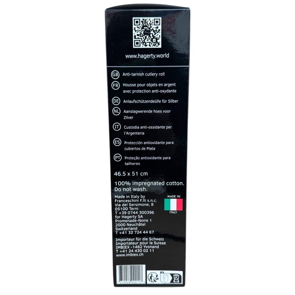 Protect your treasured silverware with the Hagerty Silver Guard Cutlery Roll A119003, designed to safeguard up to 12 table knives. This high-quality pouch prevents oxidation caused by sulfide in the air, preserving the shine and beauty of your silverware.