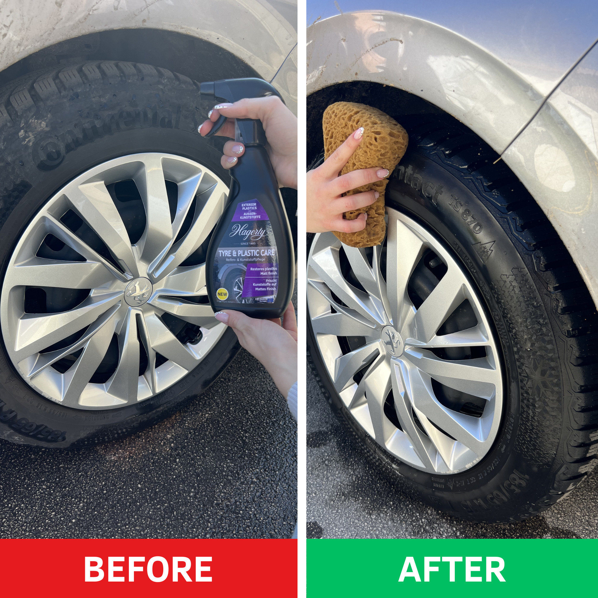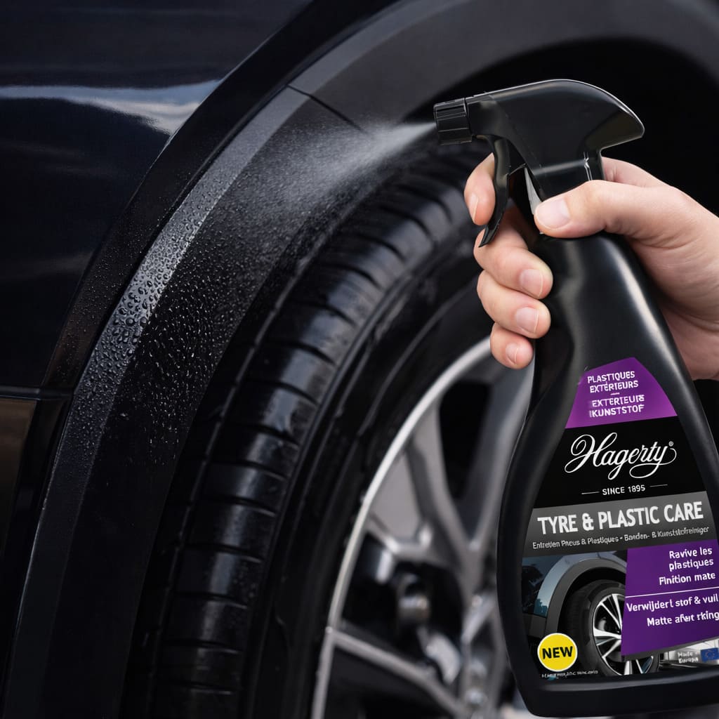The Hagerty Tyre and Plastic Care Spray is a ready-to-use solution designed to restore and enhance the appearance of tyres and exterior plastic surfaces. This effective spray helps revive faded colors on both untreated and painted plastics, ensuring surfaces look clean, even, and well-maintained.