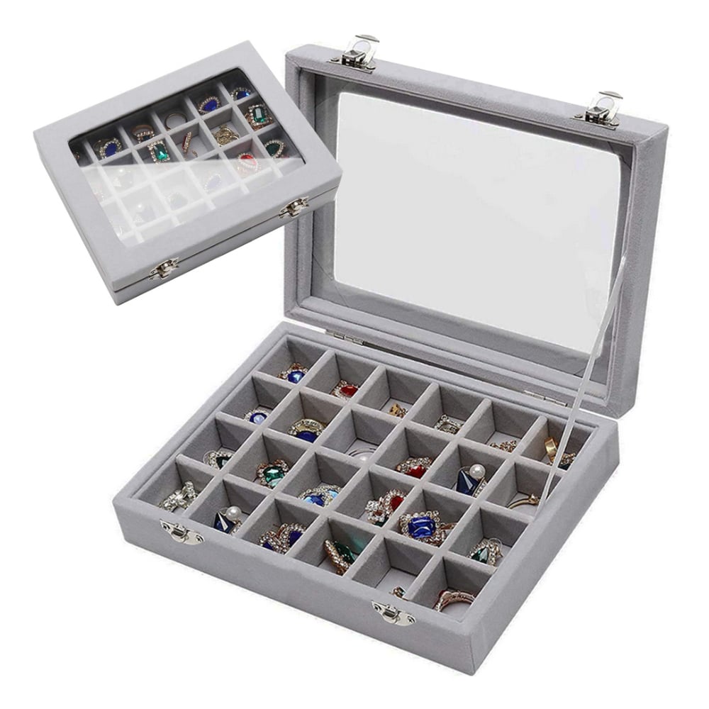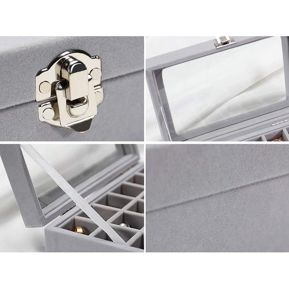 Gugita Grey Velvet Jewellery Box Organiser with Glass Lid