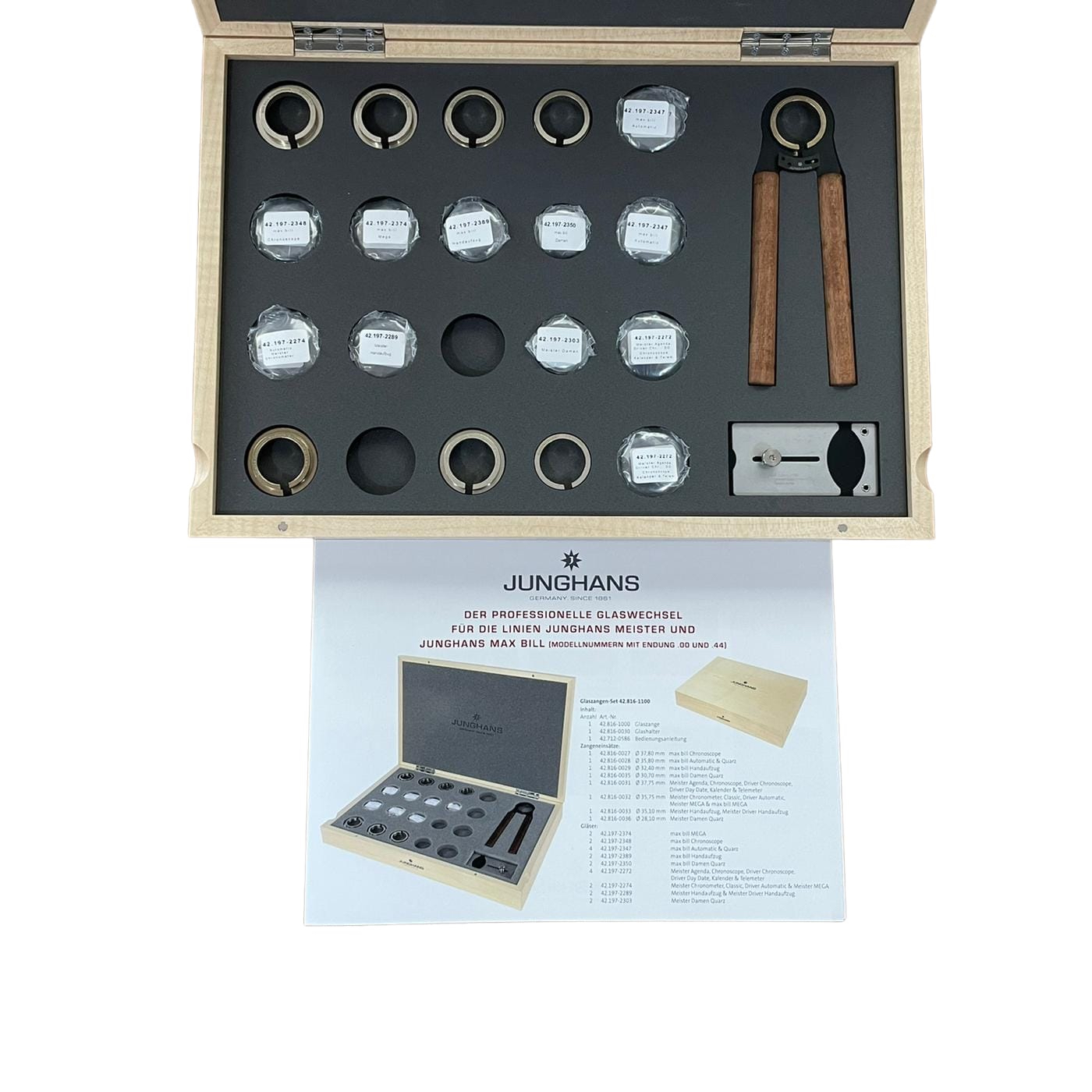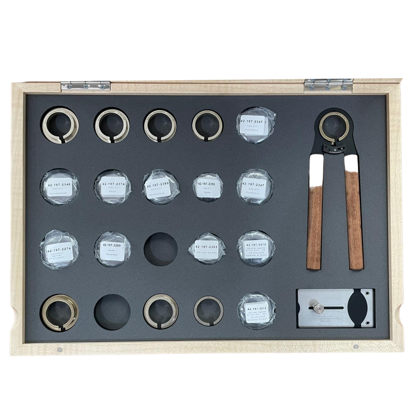 - Complete Set: Includes a universal gripper (42.816-0030) and a variety of inserts specifically tailored to the Junghans Max-Bill collection (42.816-0006, 42.816-0007, 42.816-0008, 42.816-0009, 42.197-2263, 42.197-2262, 42.197-2264, 42.197-2291, 42.197-2305, 42.197-2272, 42.197-2289, 42.197-2318)