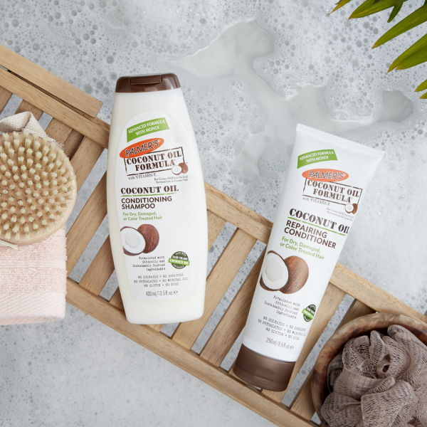 Directions: After shampooing with Palmer’s Coconut Oil Formula Shampoo, apply generously to wet hair. Allow the product to penetrate for 3-5 minutes before rinsing thoroughly. Unlock the secret to beautifully healthy hair with Palmer’s Coconut Oil Conditioning Shampoo.