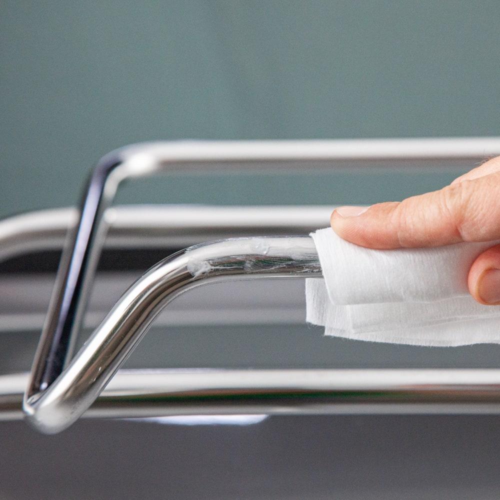 Wipe clean and buff with a clean cloth for a uniform finish.