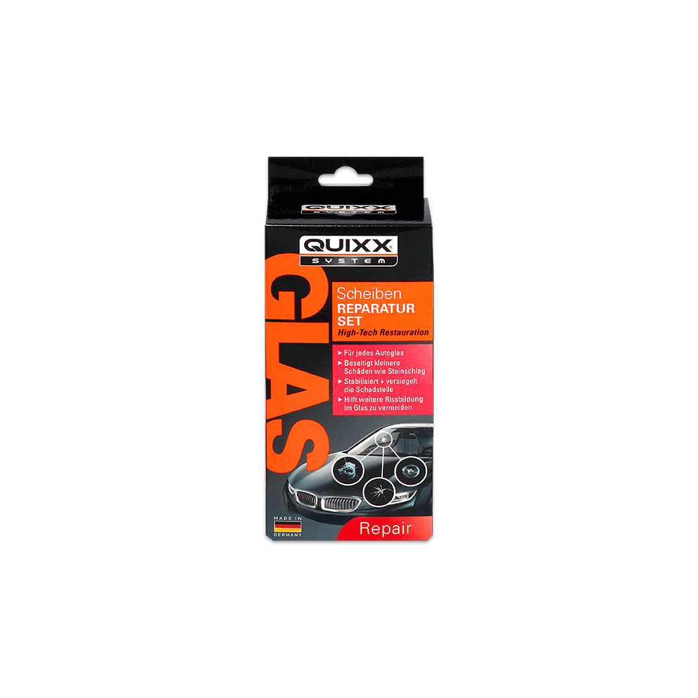 The QUIXX Windshield Repair Kit (Ref. 10210) is designed to provide a reliable, cost-effective solution for repairing windshield stone chips using a highly effective transparent repair resin and special application tools. The kit is made for fast, straightforward use and can be used even by people with no automotive repair experience. The included tools and resin are intended to help create a durable repair that improves the appearance of the damage and helps prevent cracks from spreading.
