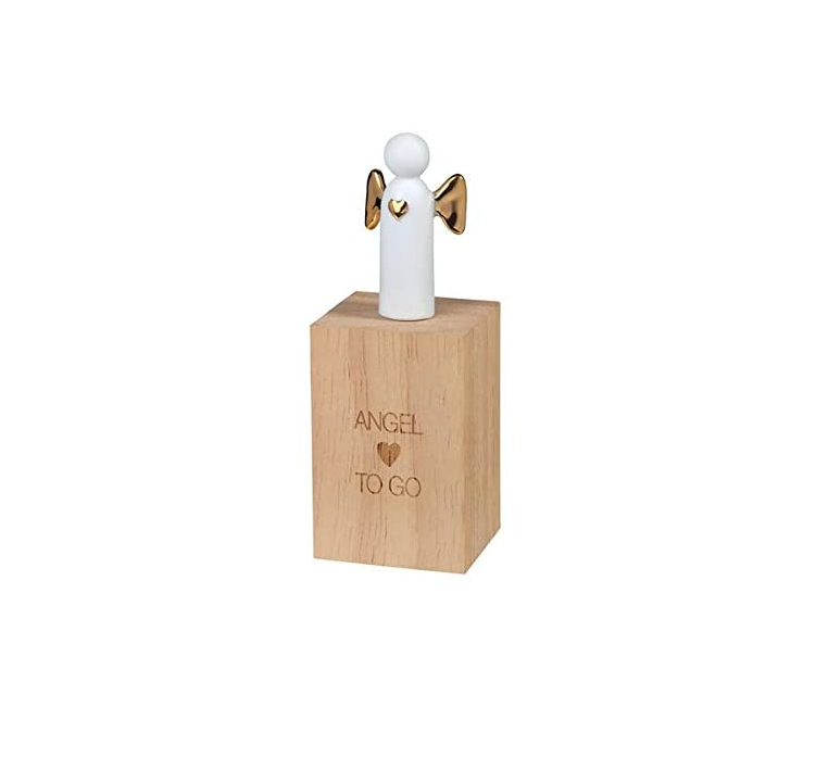 This exquisite Angel to Go porcelain angel is a heartwarming keepsake for loved ones, featuring an endearing design with its delicate gold heart and wings. Crafted from high-quality, unglazed porcelain, this charming figurine exudes warmth and elegance.