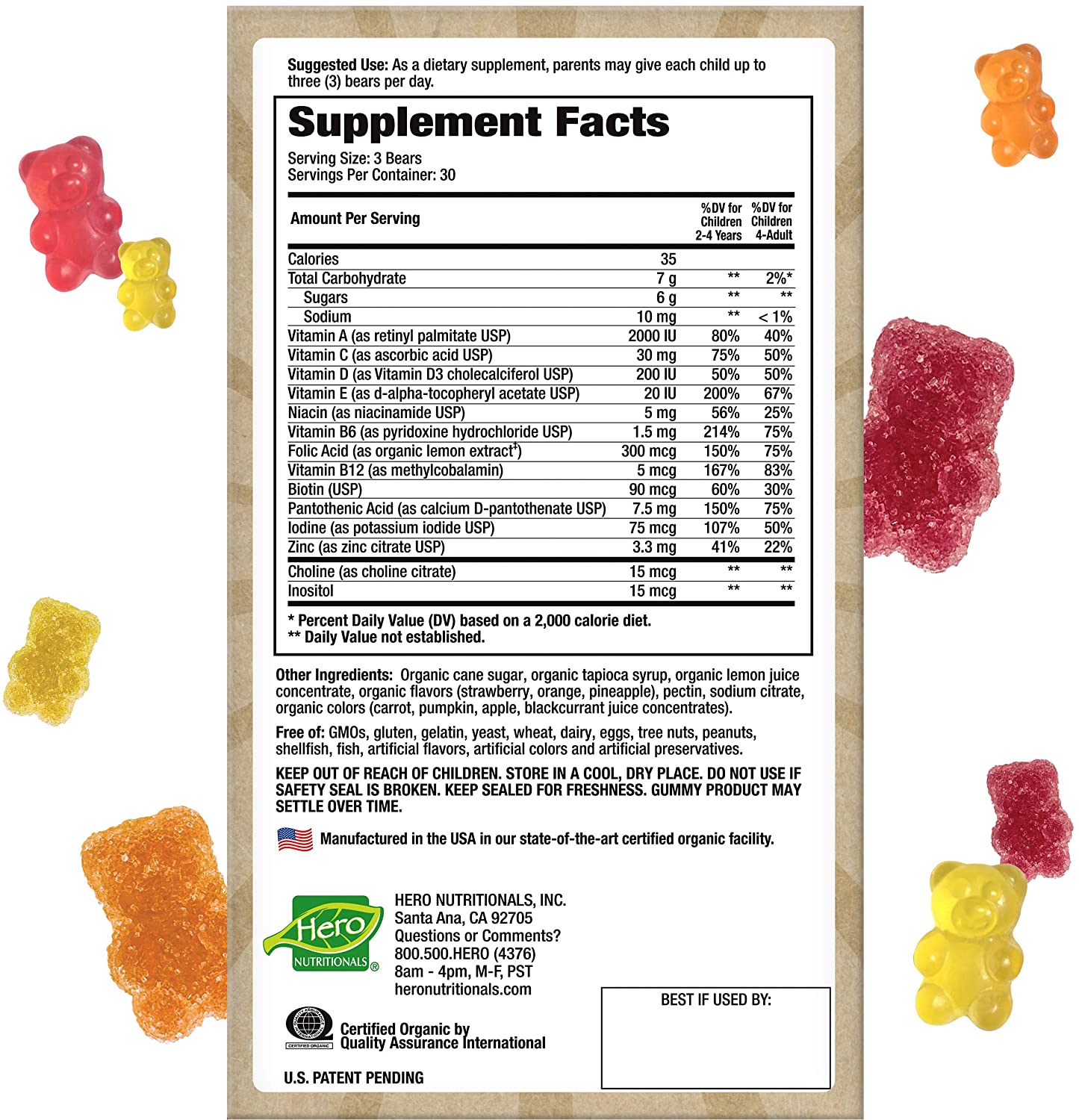 Crafted with organic strawberry, orange, and pineapple flavors, these gummy bears are derived from wholesome wholefoods, making them a treat your children will genuinely love. Each bear is bursting with goodness, offering a powerful boost of antioxidants from Vitamins A, C, and E, alongside a vital B-Complex to promote brain and heart health.
